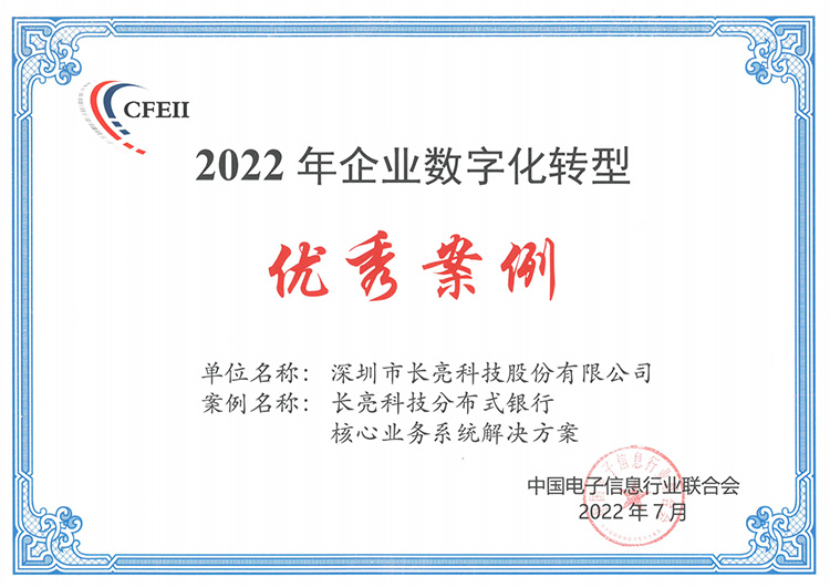 近日,工業和信息化部與廣東省人民政府聯合召開“2022中國數字經濟創新發展大會”,會議期間,中國電子信息行業聯合會承辦了“企業數字化轉型引領制造業高質量發展論壇”。會上中國電子信息行業聯合會秘書長高素梅發布了《2022年第一批數字化轉型百項優秀案例》,長亮科技分布式銀行核心業務系統解決方案、數據資產管理解決方案以及數據湖解決方案成功入選。