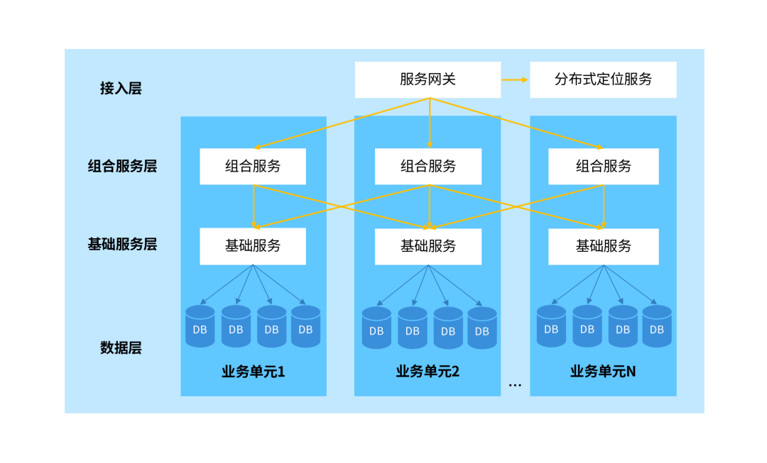 在介紹分布式定位服務(wù)之前,我們先介紹下單元化架構(gòu)的概念,單元是指一個(gè)能完成某一類業(yè)務(wù)操作(如個(gè)人存款業(yè)務(wù))的自包含集合,在這個(gè)集合中包含了業(yè)務(wù)所需的服務(wù),以及分配給這個(gè)單元的客戶數(shù)據(jù)。單元作為部署的基本單位,通常會(huì)在在多個(gè)機(jī)房中容災(zāi)部署,每個(gè)機(jī)房?jī)?nèi)單元數(shù)目不固定,任一單元均部署系統(tǒng)所需的全部應(yīng)用,數(shù)據(jù)則是全量數(shù)據(jù)按照某種維度劃分后的一部分。