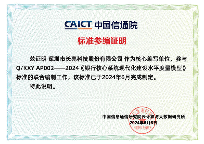 在新核心系統領域不斷進化的長亮科技,一直是行業的創新標桿,多年來參與了大型國有銀行、股份制銀行、城商行、農商行、民營銀行等幾十家大中小型銀行的核心系統現代化改造工作,厚載實踐經驗與方法論。此次參與《銀行核心系統現代化建設水平度量模型》的編制工作,是長亮科技大力踐行標準化工作、引領行業高質量發展的又一成果。