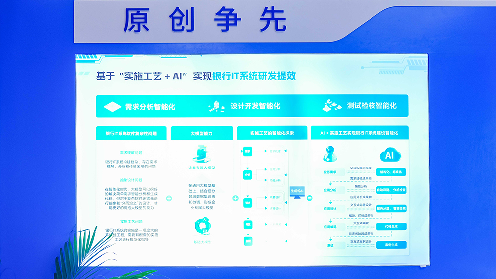 隨著人工智能時(shí)代的來臨,長亮科技認(rèn)為未來軟件工程將向著智能化編程、AI大模型的方向進(jìn)化,并創(chuàng)新探索出 “實(shí)施工藝+AI”這一前沿成果。通過將傳統(tǒng)業(yè)務(wù)需求轉(zhuǎn)化為結(jié)構(gòu)化的數(shù)字需求資產(chǎn),實(shí)現(xiàn)了從傳統(tǒng)代碼驅(qū)動到數(shù)字資產(chǎn)驅(qū)動的轉(zhuǎn)變,同時(shí)利用生成式AI技術(shù)在各個(gè)研發(fā)階段提供智能輔助,助力銀行重塑研發(fā)高效新模式,實(shí)現(xiàn)智能化的系統(tǒng)建設(shè)。