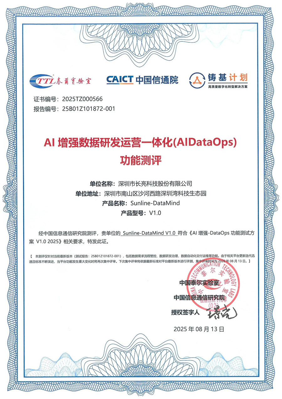 權威認證!長亮科技DataMind通過中國信通院AI增強DataOps功能測評