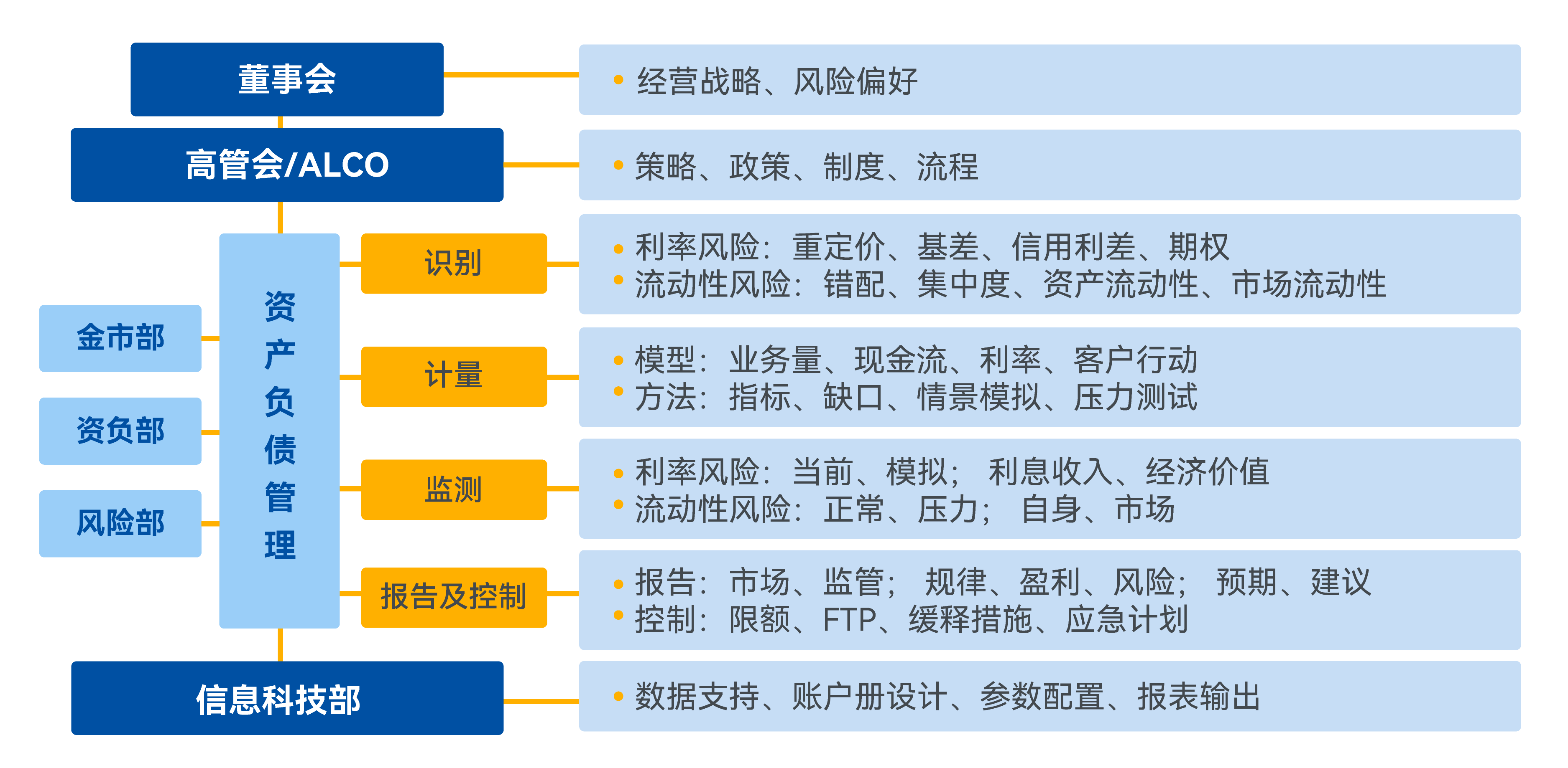 通過資產(chǎn)負(fù)債管理系統(tǒng),商業(yè)銀行可深入了解自身的資產(chǎn)負(fù)債結(jié)構(gòu),識別和度量流動性和利率風(fēng)險,并進行主動的資產(chǎn)負(fù)債管理,合理規(guī)劃和配置資源,資產(chǎn)負(fù)債管理系統(tǒng)是銀行全面控制風(fēng)險、實現(xiàn)短期利潤增長與長期市值穩(wěn)定統(tǒng)一關(guān)系的有力武器。