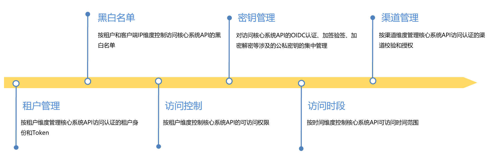 ● 安全控制體系:提供黑白名單、訪問控制、密鑰、租戶認證等多種安全體系,其中密鑰又從加密解密、加簽驗簽和認證授權等多種方式來保證API訪問的安全性。