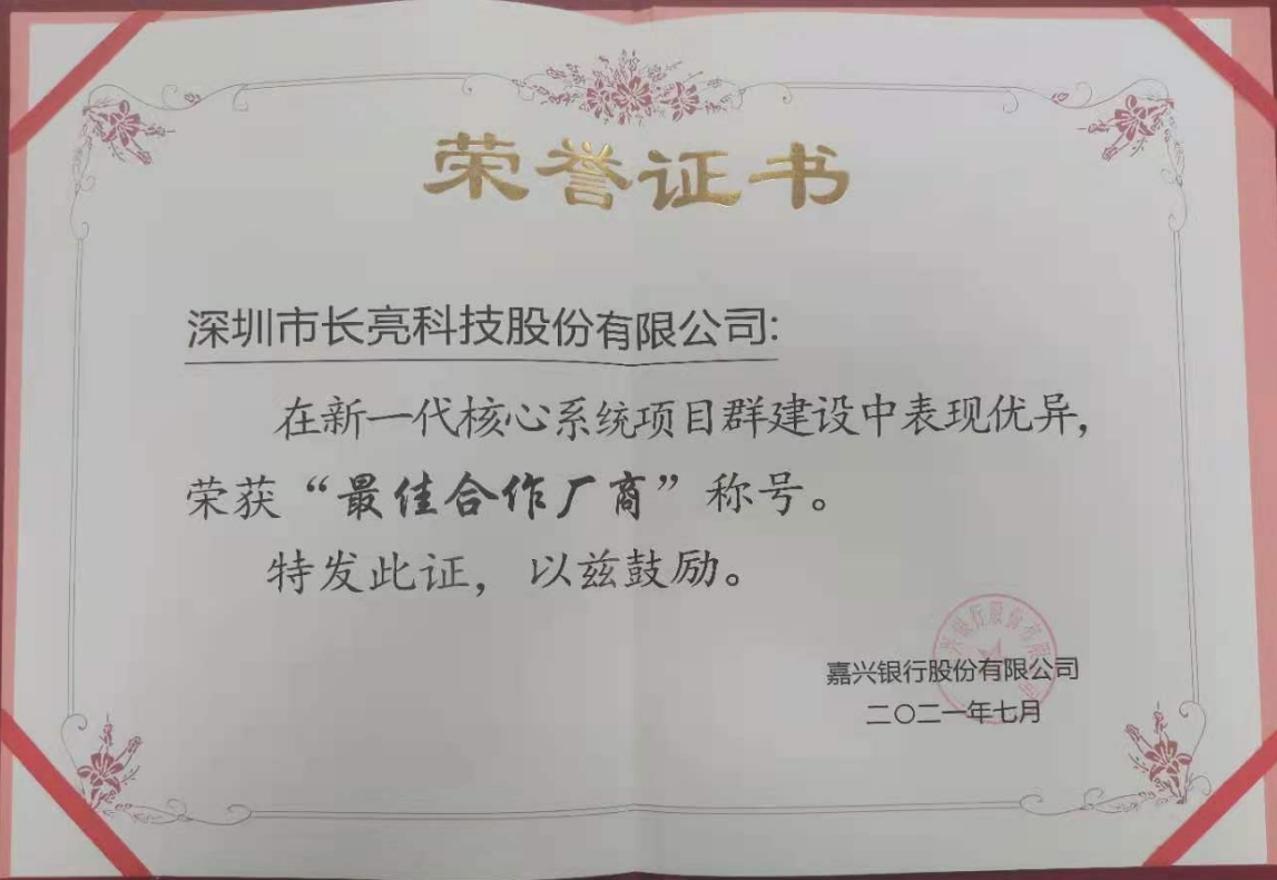 長亮科技團隊在“紅芯工程”項目中所表現出來的專業精神,也獲得了嘉興銀行的高度認可,被評為該項目的“最佳合作廠商”。
