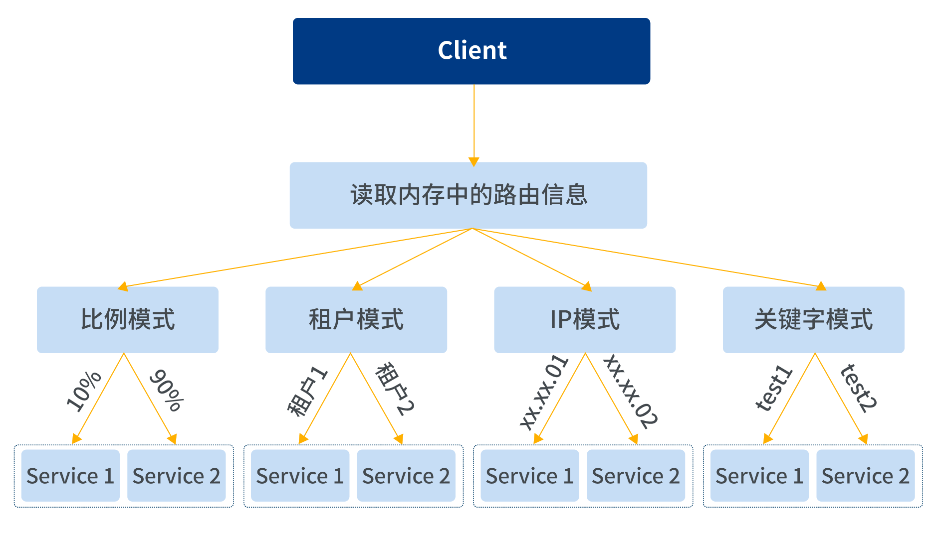 ? 租戶模式:不同租戶路由不同的服務提供者。
