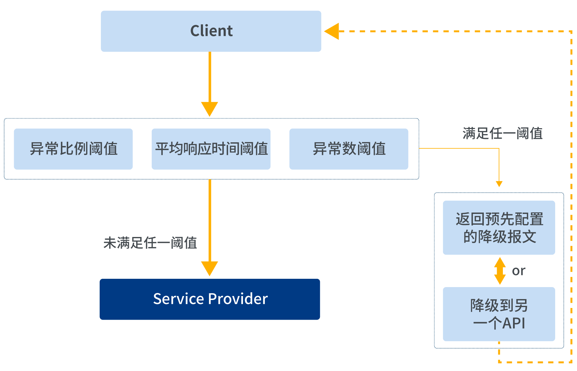 當服務故障時,為了防止整個系統的故障,對系統采取熔斷降級策略??筛鶕骄憫獣r間、秒級異常比例、分鐘級異常數等維度進行熔斷降級處理。